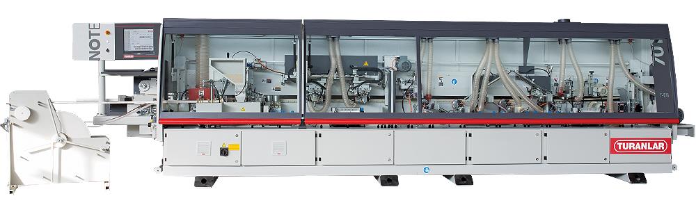 * 02 máy dán cạnh (nẹp) tự động với 14 chức năng (Turanlar – châu âu), và đặc biệt máy của chúng tôi trang bị mặt tỳ phôi bằng dây belt. (khác biệt với việc tỳ phối bằng con lăn làm ảnh hưởng đến độ chính xác của sản phẩm). Với full 14 chức năng, từ khâu phay phẳng bề mặt dán, đến việc hoàn thiện mép dán bằng công tác cạo tinh và đánh bóng tự động. Máy cho ra sản phẩm có chất lượng mép dán xuất sắc. Điều này chính là yếu tố tiên quyết để đảm bảo chất lượng và thẩm mỹ của sản phẩm.