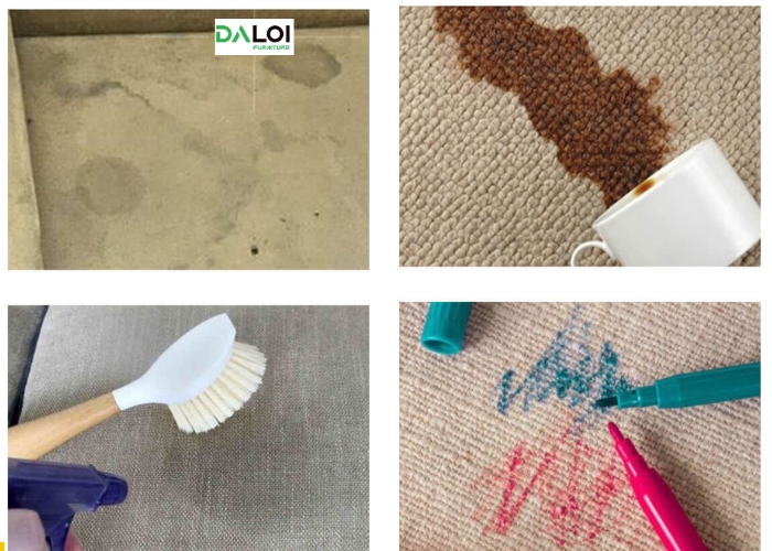 Vết bẩn từ thức ăn và đồ uống: Dùng khăn ẩm để thấm hút vết bẩn càng nhiều càng tốt, sau đó lau sạch bằng dung dịch làm sạch phù hợp.