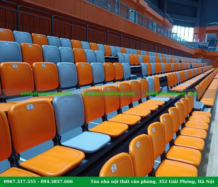 Danh sách sản phẩm ghế khán đài – ghế nhà thi đấu, đa dạng kiểu dáng, chất liệu, kích thước được dùng cho không gian phòng hội trường, nhà thi đấu hay sân vận động . Đặc biệt khi mua số lượng lớn hoặc theo dự án có Chiết khấu và Khuyến mãi lớn cho khách hàng