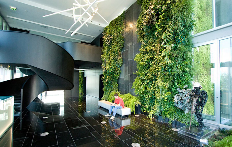 Đưa thiên nhiên vào phòng làm việc là một ý tưởng không tồi chút nào. Sự có mặt có cây xanh sẽ phá vỡ sự phân chia bực bối của những vách ngăn với nhau. Khi làm việc tại đây bạn sẽ cảm nhận được năng lượng tràn đầy từ thiên nhiên, giúp môi trường làm việc trở nên trong lành, thoáng mát.