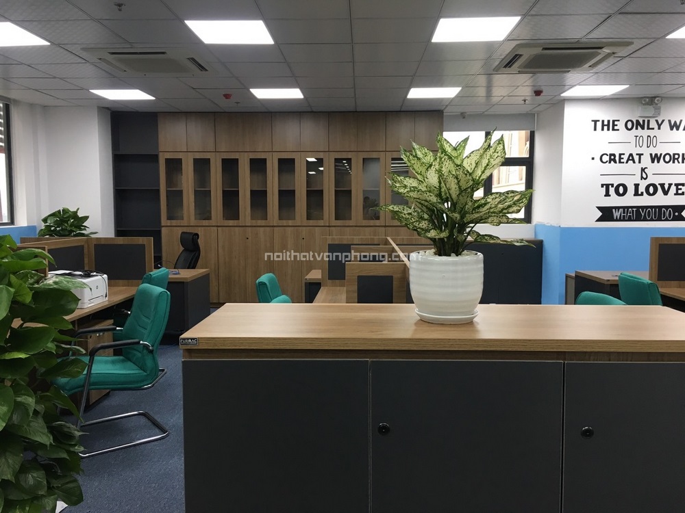 Đặc biệt, để đem tới một không gian văn phòng xanh, trên mỗi tủ tài liệu đều được Nội Thất Đa Lợi bố trí những chậu cây xanh xinh xắn tạo cảm giác thư giãn, nhẹ nhàng. Đây là cách thanh lọc không khí hiệu quả, đáp ứng tiêu chí an toàn với môi trường, sức khỏe nhân viên theo yêu cầu của khách hàng.