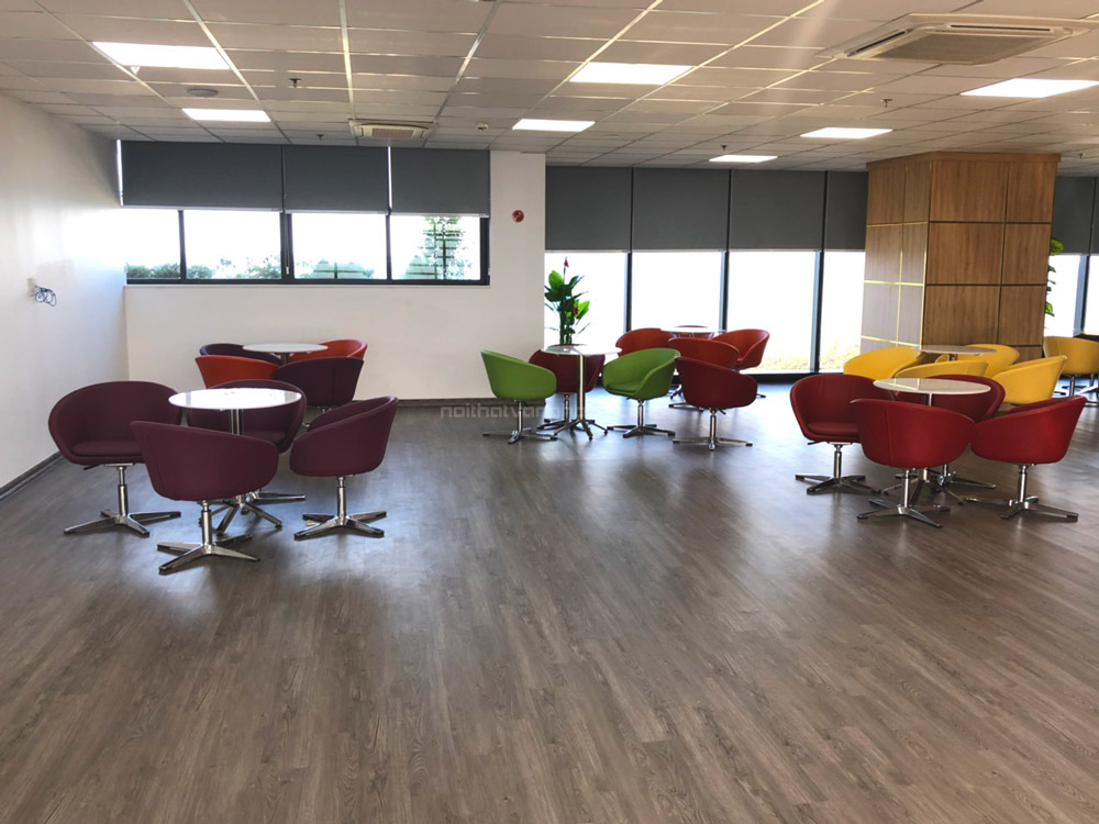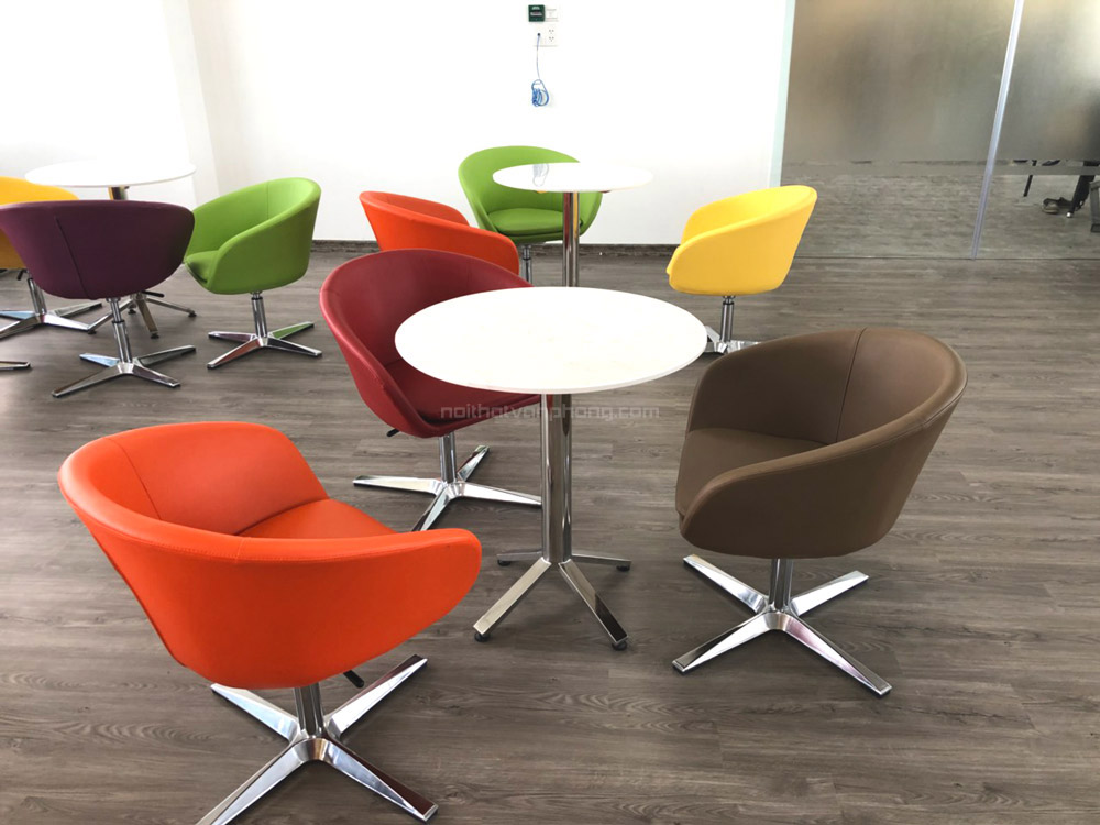 Không gian này bố trí kiểu bàn tròn cùng với ghế xoay. Các sản phẩm nội thất này có màu sắc đa dạng và phong phú tạo không gian năng động và rất thoải mái cho đội ngũ nhân viên công ty.