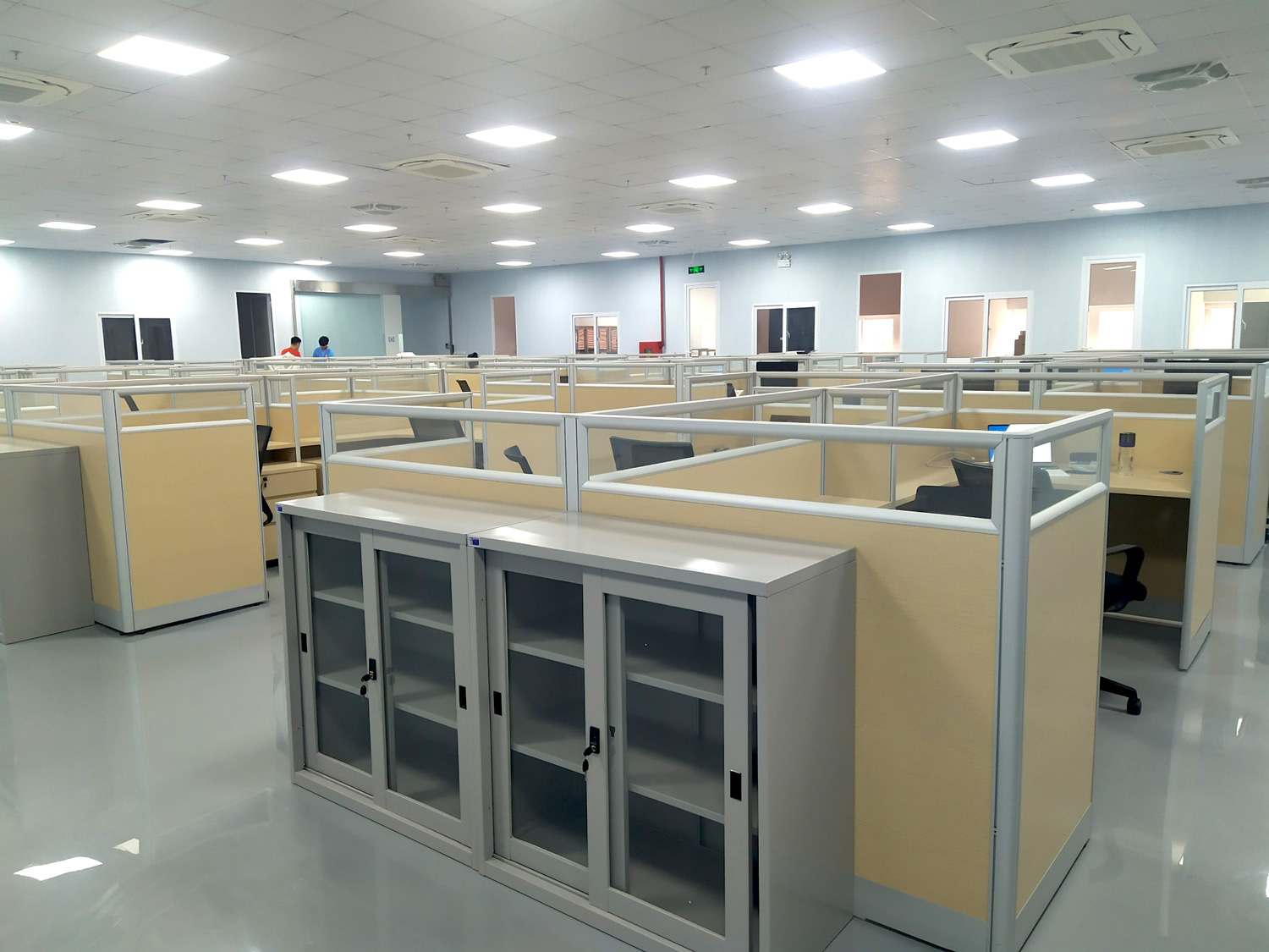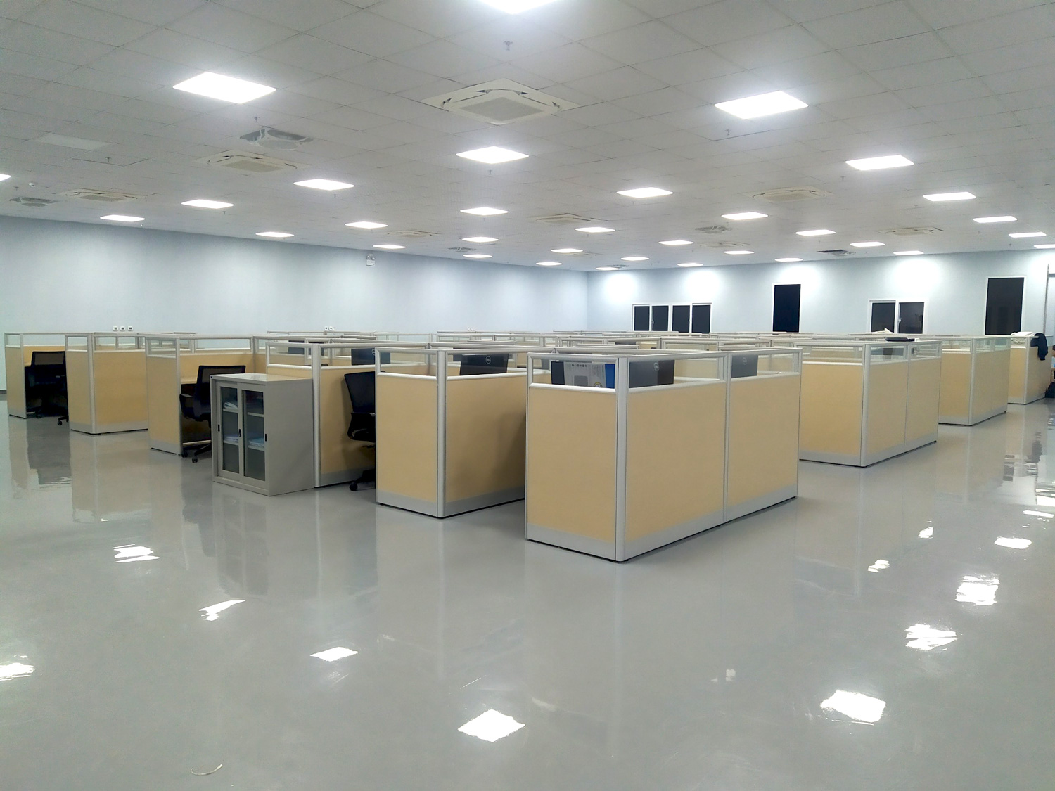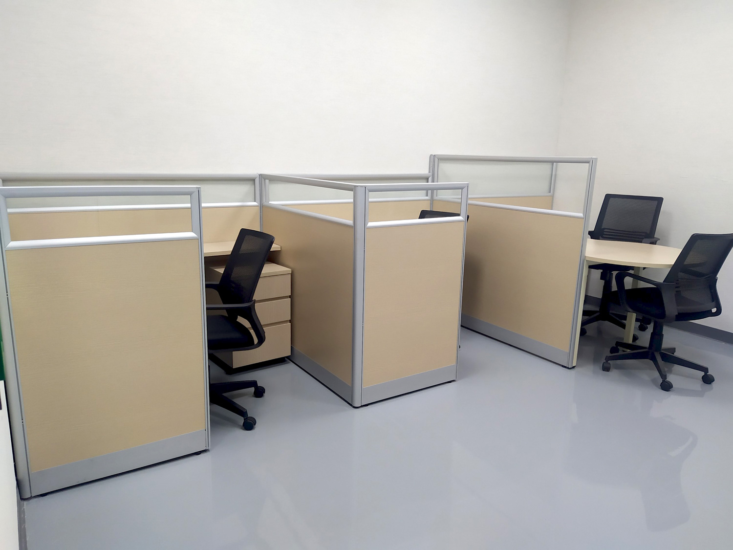 Mỗi không gian làm việc của từng cá nhân đều được ngăn cách với nhau bằng hệ thống vách nhựa chịu lực. Cho dù không gian riêng biệt nhưng vẫn có thể giúp việc trao đổi, thảo luận công việc dễ dàng, đơn giản hơn.
