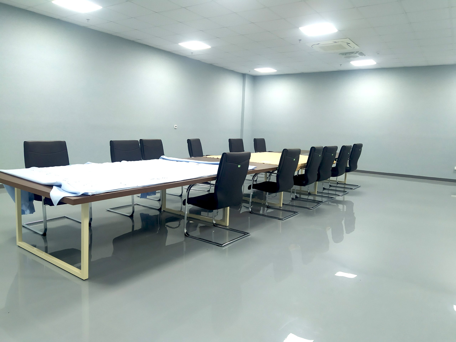 Phòng hợp có thiết kế cửa kính để lấy trọn ánh sáng tự nhiên. Hệ thống đèn led âm trần cho không gian cảm giác rộng rãi, thông thoáng hơn không còn quá căng thẳng khi bước vào cuộc họp. Nội Thất Đa Lợi đã bố trí bàn họp lớn cùng nhiều ghế ngồi dành cho số lượng nhân viên lớn với tông màu đen – xám làm chủ đạo.