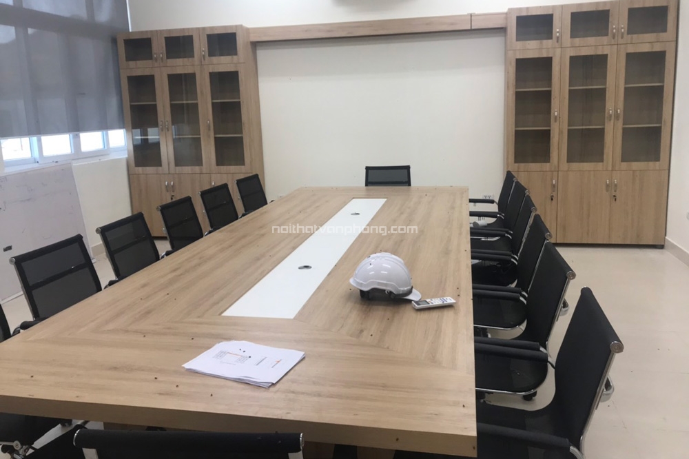 Nội Thất Đa Lợi hiểu rằng lựa chọn quá nhiều màu sắc trong không gian phòng họp luôn là điều cấm kỵ. Cách bài trí này làm xao nhãng, mất tập trung trong cuộc họp. Do đó, chúng tôi đã sử dụng gam màu trầm kết hợp với 2 tông chủ đạo trắng và đen cùng các đường vân gỗ nhẹ nhàng, gần gũi.