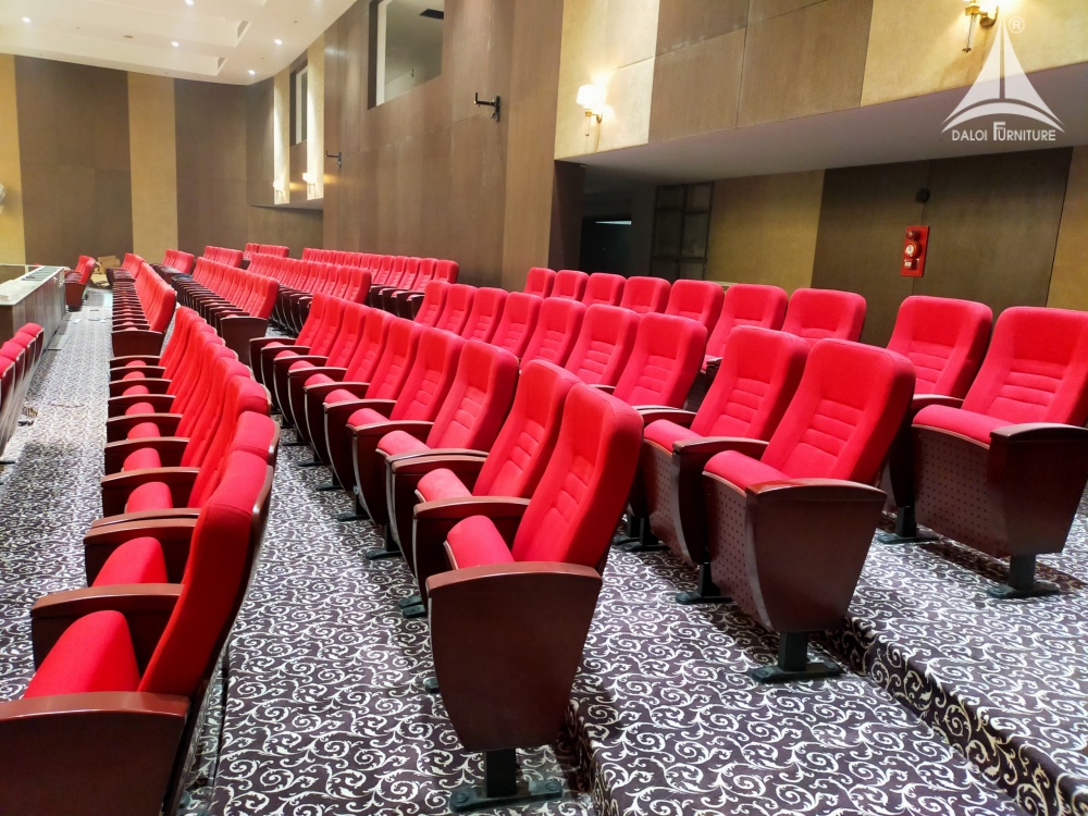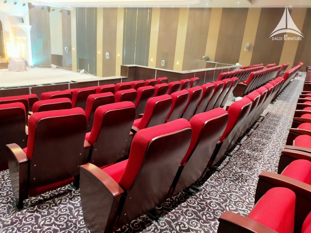 Ghế được bọc một lớp đệm êm ái nổi bật với tông màu đỏ phổ biến của các mẫu ghế phòng hội trường hiện nay. Tay vịn từ gỗ tự nhiên được bo cong mềm mại nên khi để tay rất thoải mái. Thiết kế của ghế hướng đến nét cổ điển, sang trọng phù hợp với nhiều chương trình tổ chức tại hội trường từ những buổi lễ trang trọng, cuộc họp nghiêm túc đến các show văn nghệ kỷ niệm trong Tập đoàn.