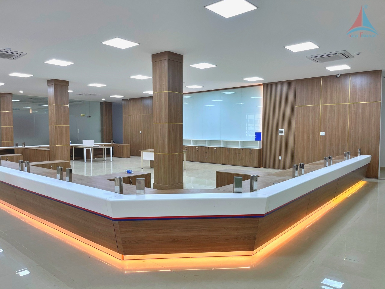 Có mối quan hệ đối tác lâu dài, Nội Thất Đa Lợi luôn được Co-opBank tin tưởng lựa chọn trong các dự án thi công quầy giao dịch tại các chi nhánh trên khắp cả nước. Tùy thuộc theo kiến trúc, diện tích thực tế của không gian để chúng tôi đưa ra được những phương án tối ưu nhất.
