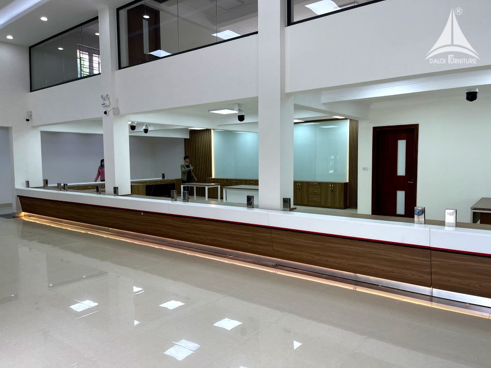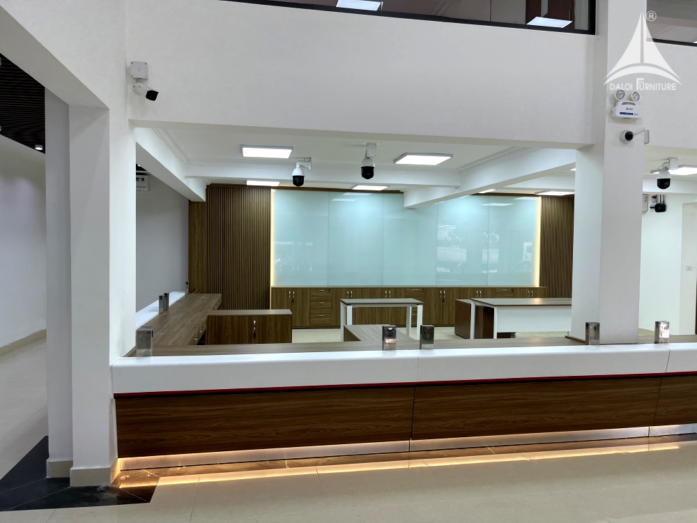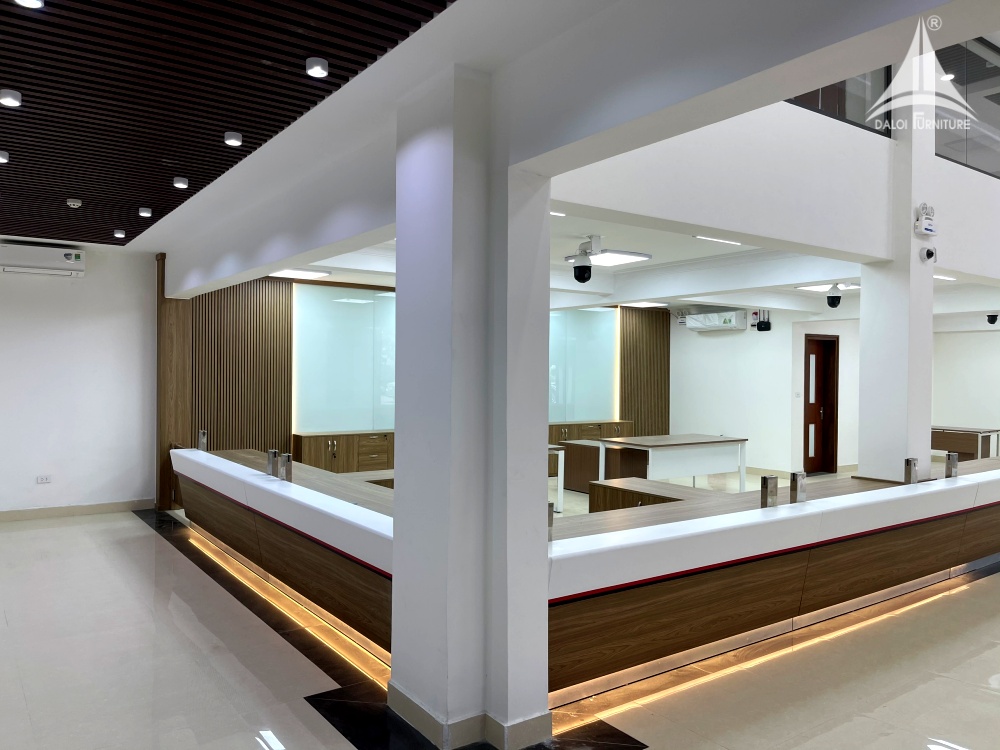 Thi công nội thất ngân hàng phải đảm bảo được sự độc đáo, nổi bật nét riêng của thương hiệu và thể hiện được vẻ đẹp vốn có của ngân hàng. Bên cạnh đó, không gian phải được trang trí hài hòa, tạo ấn tượng mạnh mẽ ngay từ cái nhìn đầu tiên với khách để tạo sự tin tưởng vào thương hiệu này. Để đạt được toàn bộ những yếu tố này đội ngũ thi công của Nội Thất Đa Lợi đã dồn nhiều tâm huyết trong từng hạng mục.