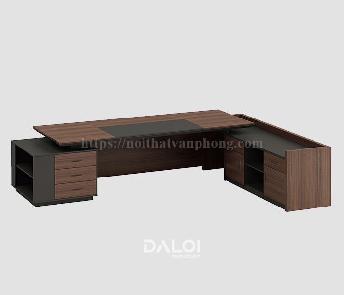 - Không gian làm việc siêu rộng: Với chiều dài lên tới 2m8, thiết kế bàn chữ L mang đến diện tích mặt bàn cực lớn, giúp lãnh đạo dễ dàng phân chia khu vực tiếp khách, khu vực làm việc và khu vực họp nhóm nhỏ ngay tại bàn.