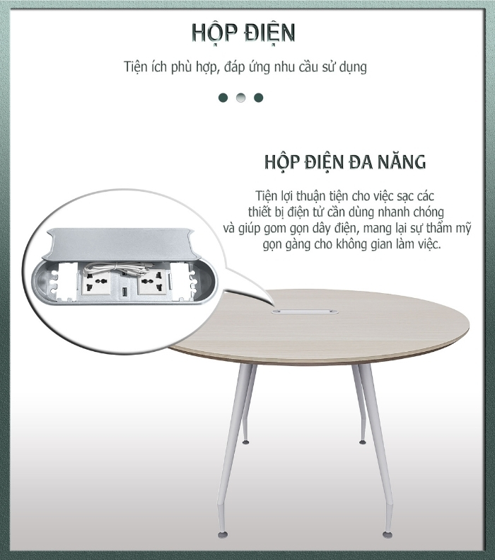 - Thiết kế bàn tròn giúp tạo sự kết nối và trao đổi hiệu quả giữa các thành viên.