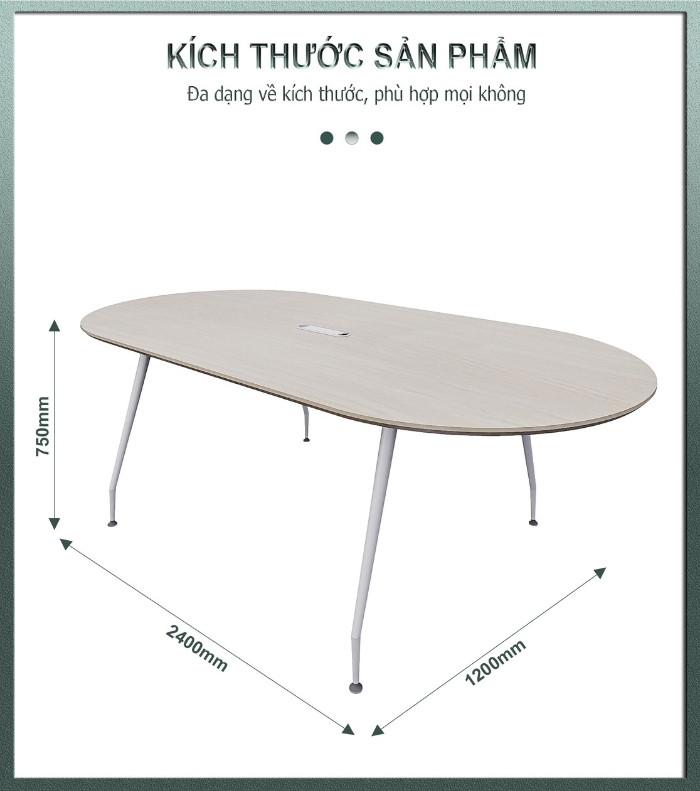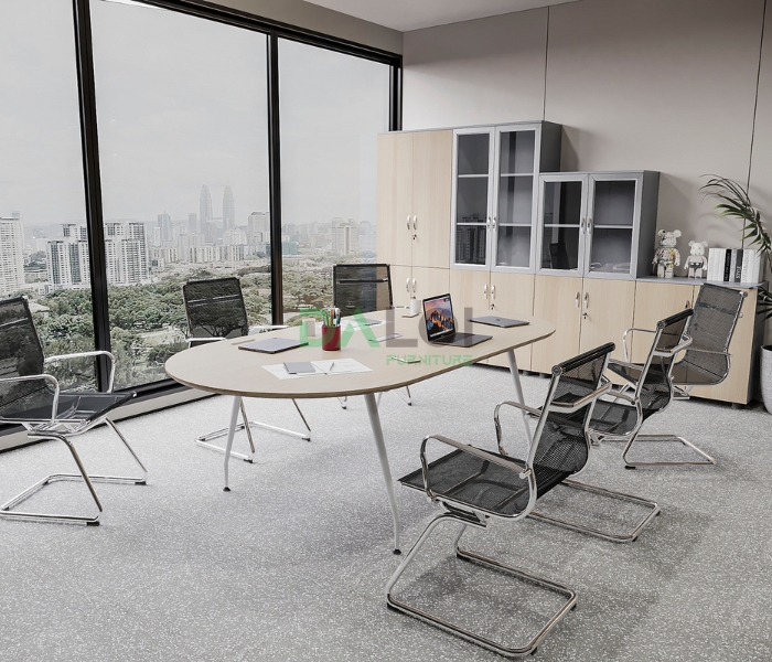 Kiểu dáng: Mặt bàn họp hình bầu dục hiện đại, tối ưu không gian phòng họp.