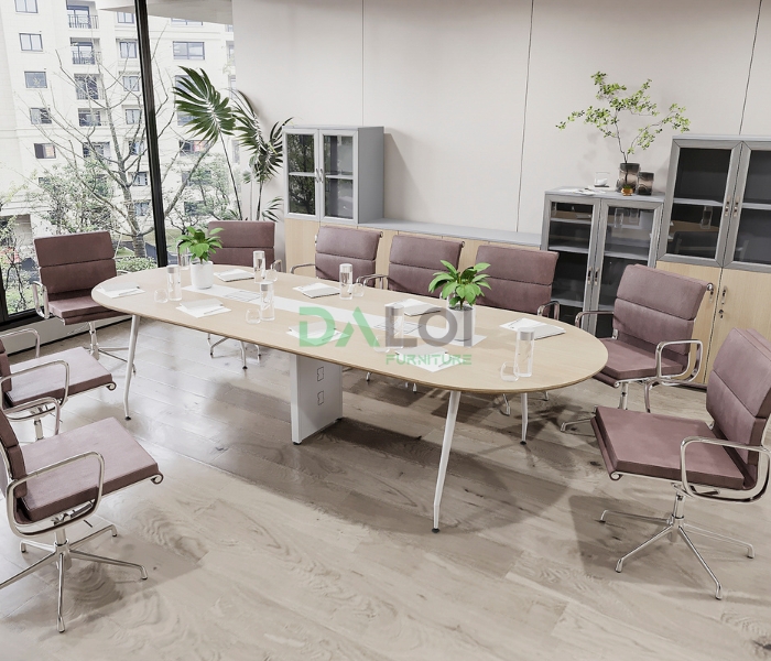 Kiểu dáng: Mặt bàn họp hình bầu dục sang trọng, thiết kế tối giản, hiện đại.