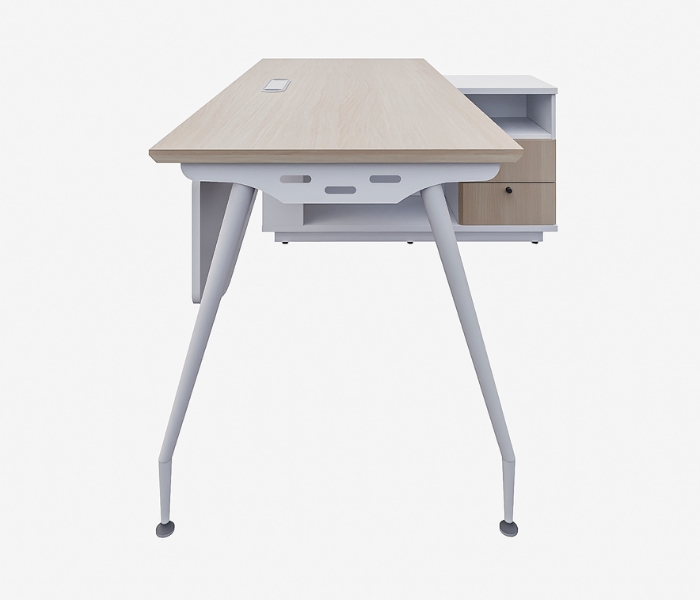 - Cạnh Bàn Tinh Tế: Cạnh bàn được vát tinh tế, dán viền tự động sắc nét, tăng tính thẩm mỹ và sự sang trọng cho bàn trưởng phòng.