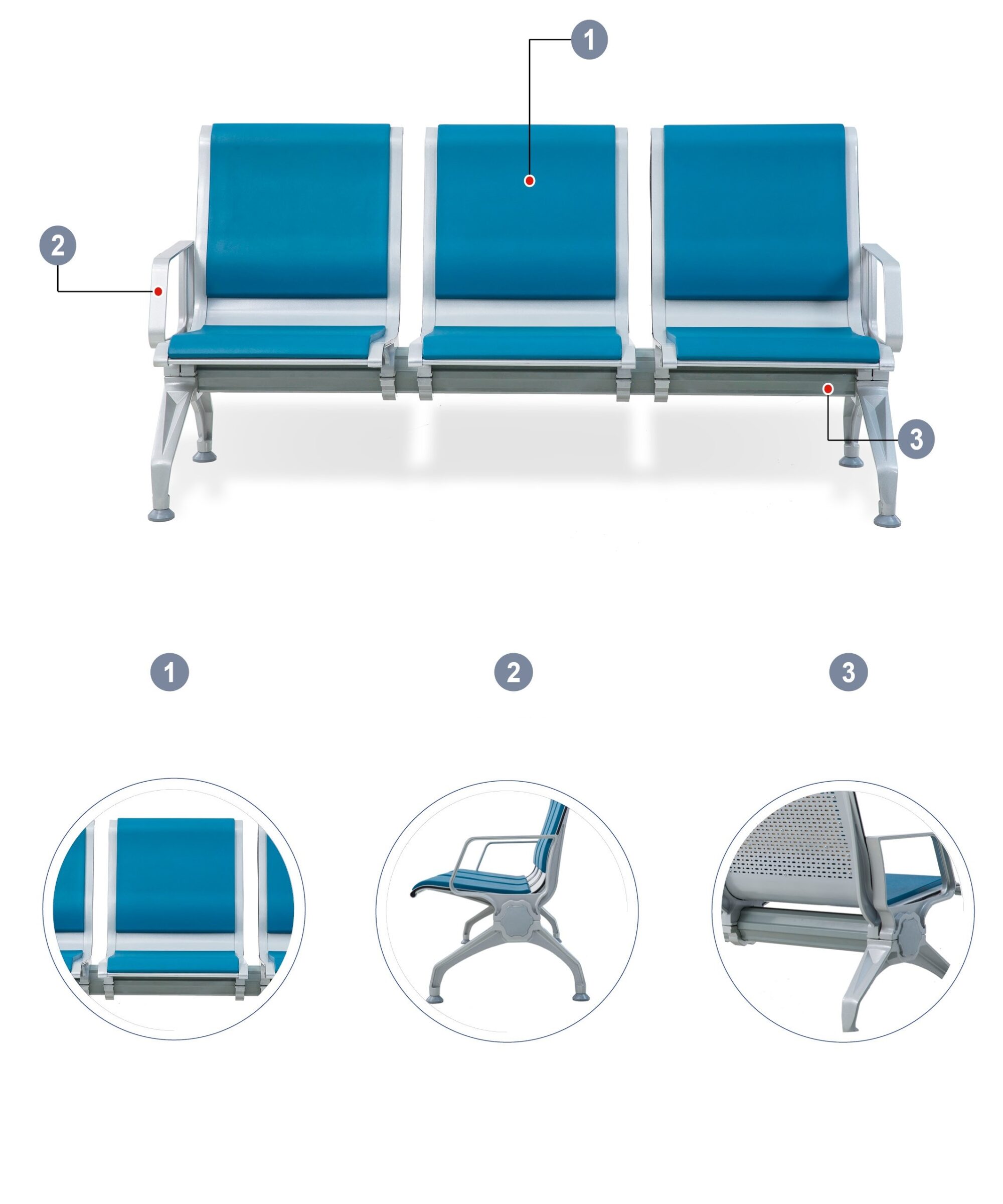 Sản phẩm ghế bằng chờ GC-WB03P kết cấu vững chắc thích hợp sử dụng trong phòng chờ nhà ga, sân bay, bệnh viện…