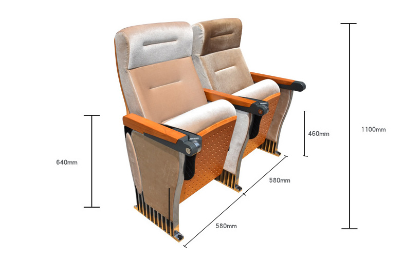 Ghế hội trường FMZ-L26 có kích thước tiêu chuẩn chiều cao 1100mm X chiều rộng 550m X chiều từ mặt nền đến mặt ghế ngồi là 640mm. Kết hợp với kích thước này là tone màu hoàng gia, đem tới một không gian cực kỳ trang nghiệm và lịch sự, sang trọng.