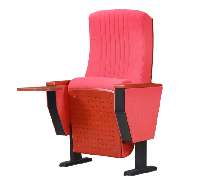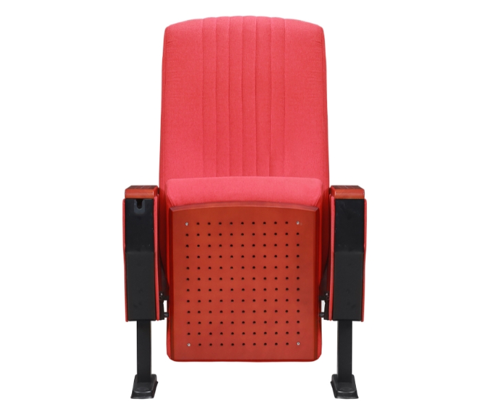 | Kiểu dáng | – Với thiết kế vững chãi, chân sắt sơn tĩnh điện tích hợp hộp để cất bàn gấp. – Toàn bộ phần mút tựa, mút đệm là mút đúc định hình chống xẹp lún, giữ nguyên biên dạng trong quá trình sử dụng. – Với bàn viết gấp gọn bằng cơ chế trục khửu, dễ dàng cất gọn khi không sử dụng. – Đệm ngồi có cơ chế hồi vị tự động (hồi vị chậm và không phát ra tiếng kêu). – Tấm ốp dưới được khoan lỗ tiêu âm (Làm tăng khả năng tiêu âm, và giảm tiếng vọng âm thanh trong hội trường). – Ghế có thể lắp ráp đơn chiếc hoặc lắp ráp liên hoàn thành dãy dài. |
