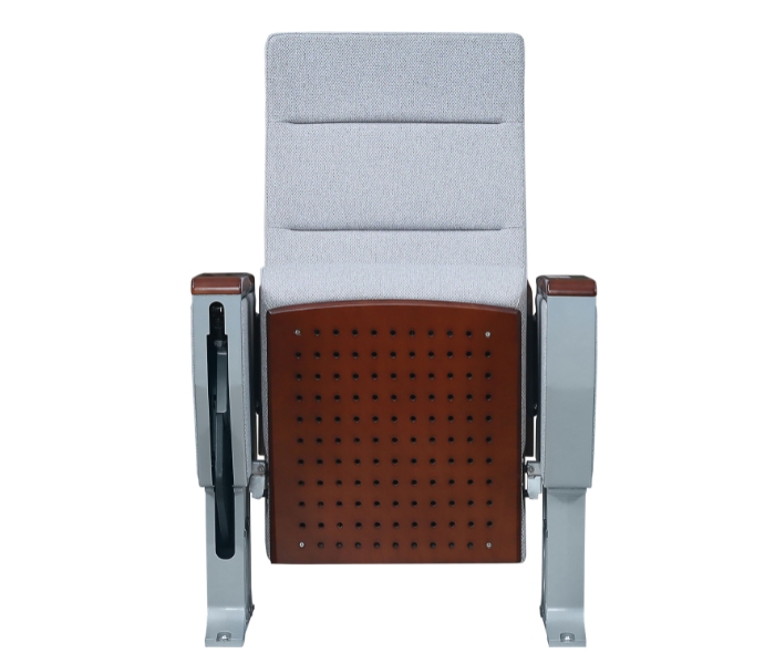 | Kiểu dáng | – Với thiết kế vững chãi, chân sắt sơn tĩnh điện tích hợp hộp để cất bàn gấp. – Toàn bộ phần mút tựa, mút đệm là mút đúc định hình chống xẹp lún, giữ nguyên biên dạng trong quá trình sử dụng. – Với bàn viết gấp gọn bằng cơ chế trục khửu, dễ dàng cất gọn khi không sử dụng. – Đệm ngồi có cơ chế hồi vị tự động (hồi vị chậm và không phát ra tiếng kêu). – Tấm ốp dưới được khoan lỗ tiêu âm (Làm tăng khả năng tiêu âm, và giảm tiếng vọng âm thanh trong hội trường). – Ghế có thể lắp ráp đơn chiếc hoặc lắp ráp liên hoàn thành dãy dài. |