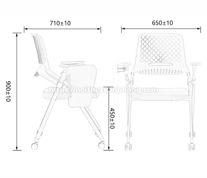 | Kiểu Dáng & Khung | Kiểu dáng: Ghế training có bàn viết gấp gọn thông minh. Khung: Thép carbon dày 1.5mm, hàn công nghệ chính xác, phủ sơn tĩnh điện. Tay vịn: Cố định, chắc chắn. |