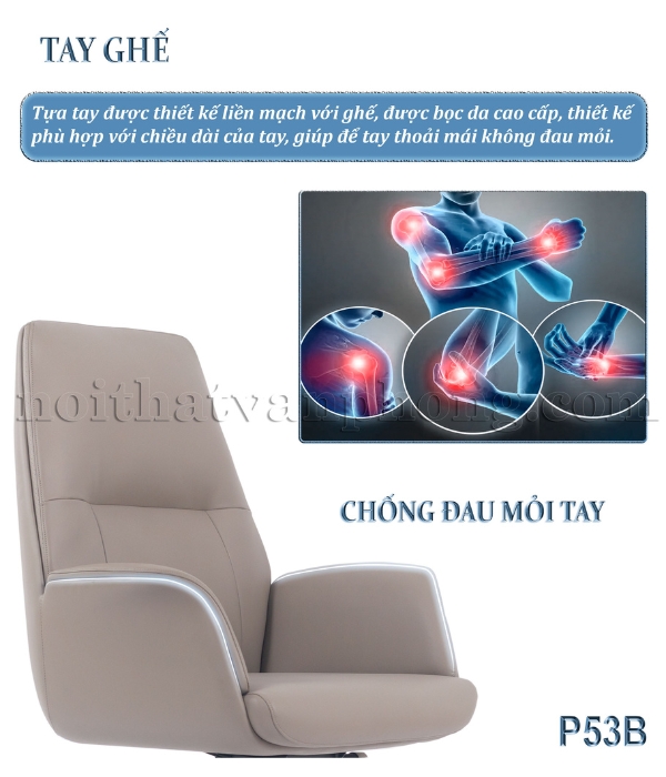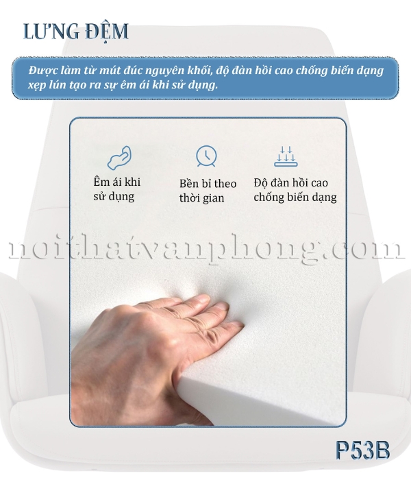 Ghế xoay da P53B là giải pháp nâng cao chất lượng làm việc của bạn thông qua 3 yếu tố cốt lõi: