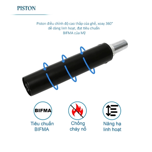 - Cơ Chế Điều Chỉnh Linh Hoạt: Chiếc ghế xoay văn phòng này được trang bị hệ thống ben thủy lực cao cấp, giúp điều chỉnh độ cao ghế êm ái, mượt mà và an toàn.