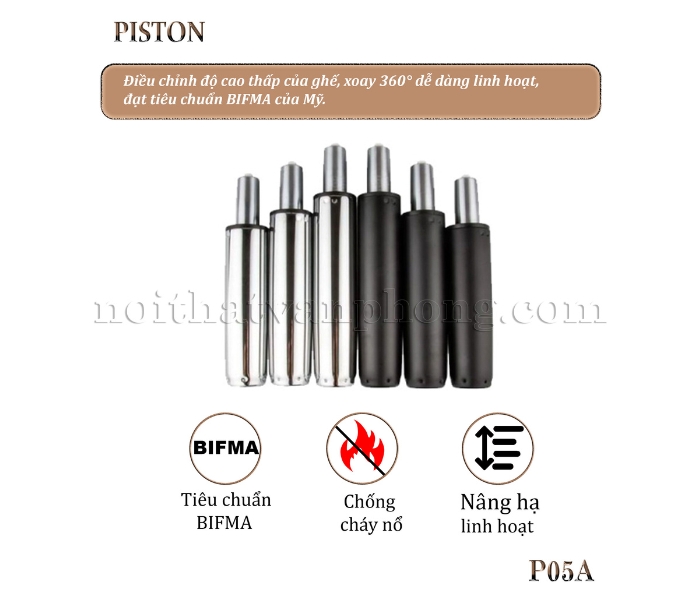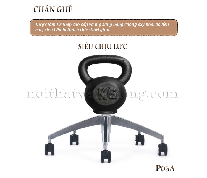 - Ổn Định Tối Ưu: Chân ghế thép mạ cao cấp không chỉ đảm bảo thẩm mỹ mà còn mang lại khả năng chịu lực tuyệt vời và ổn định tối ưu. Ghế xoay nhập khẩu P05A tích hợp các chức năng nâng hạ và xoay 360 độ linh hoạt.