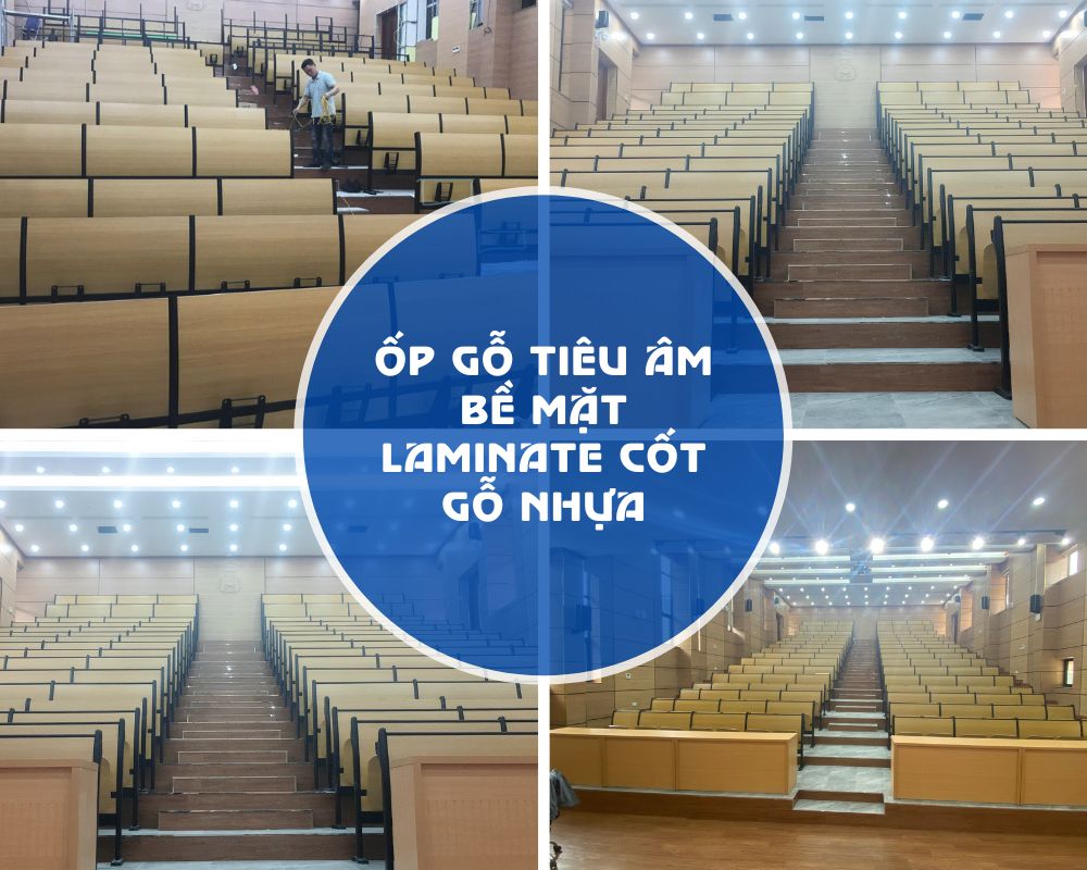 Thi công ốp tiêu âm bề mặt laminate cốt gỗ nhựa cho hội trường, giảng đường, ghế hội trường đại học Y Hà Nội
