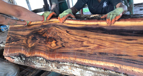 Bước 3: bóc bỏ phần vỏ và cưa bỏ 1 phần lớp gỗ tạp bên ngoài để lấy độ phẳng của thân gỗ (tùy loại gỗ để bóc bỏ nhiều hay ít)